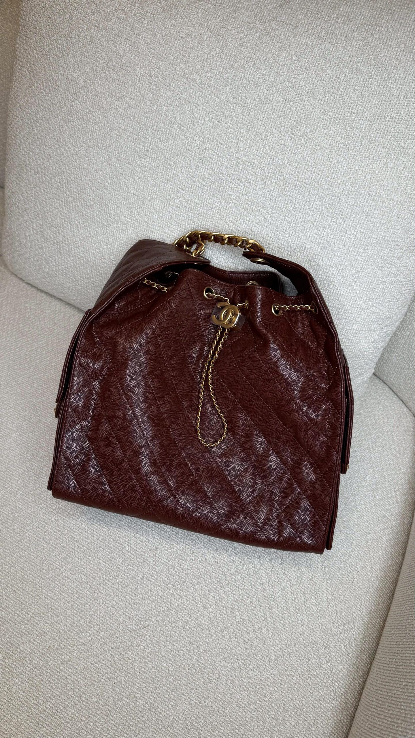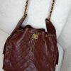 Chanel 25 Média na cor marrom/chocolate, em couro e ferragens douradas.