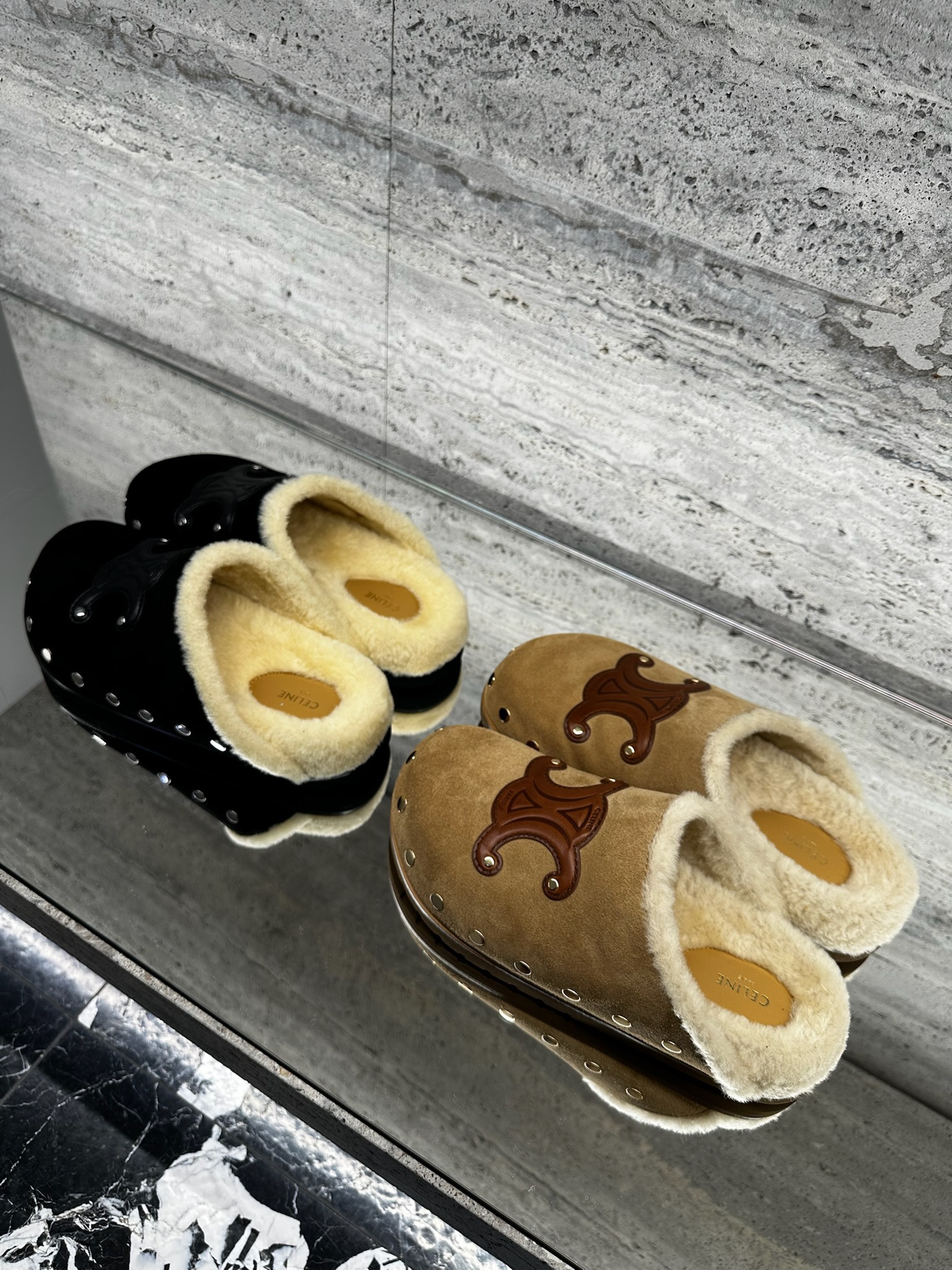Disponível em preto e caramelo.