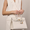 Bolsa Birkin 30 em couro Epsom branco, ferragens douradas. Luxo clean e versátil.