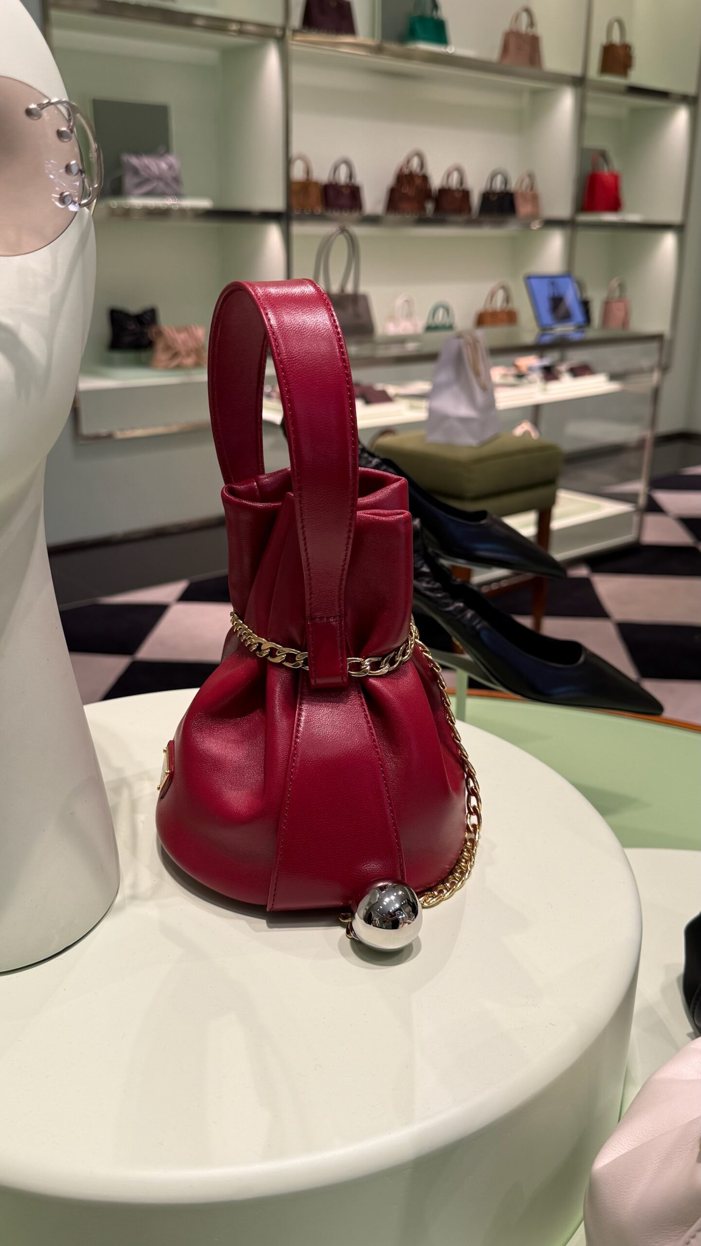 Tem um visual moderno, minimalista e possui uma corrente dourada com um pingente que dão um toque de “joia” na bolsa. Disponível em couro branco e vermelho.